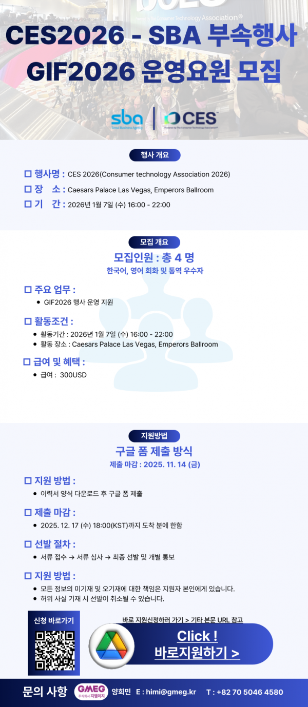 CES2026-SBA 부속행사 GIF운영요원 모집(통역 및 운영)